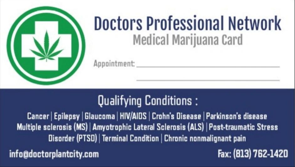 Doctors Professional Network has offices located in Tampa & Plant City, Florida. We are the medical marijuana doctor that offers people with a wide range of services geared towards addressing common illnesses, medical, and health injuries. Contact us today to learn more.